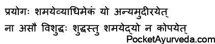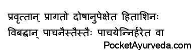 Palliative therapies or introduction of food into the digestive tract must be used, followed by elimination through nearby methods (either via mouth – using Vamana’s emesis process; or via an oral route through purgation – Virechana). 21-22