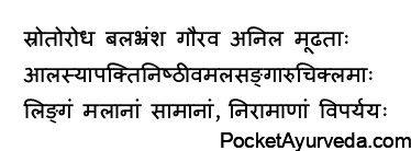 The opposites of these symptoms are Nirama Doshas (not to be confused with Ama, which is undigested materials) 23-24.