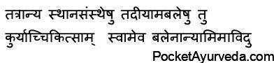 Special attention must be given to the Dosha that has crossed over into the middle of other Doshas and appears weak since its own power outpaces other Doshas. Priority should also be given to this Dosha for its superior performance.