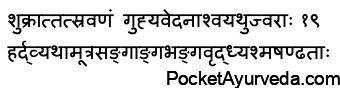 Guhya Vedana – pain in the groin region. Shvayathu – edema, inflammation Jvara – fever Hrid Vyatha, a cardiac issue, and distress
