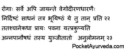 The reason is that the Vata is blocked in the intestine, preventing it from causing vomiting. In the rectum and intestines the natural movement that occurs in Vata can be upwards. Due to suppression of the flatus, Vata is inclined upwards and creates all the issues. Most of the problems that are explained are caused by Vata imbalance.