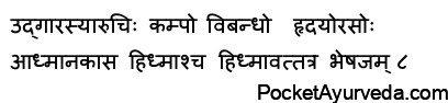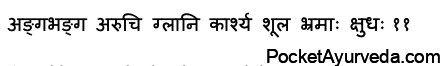Hridrik – heart problems that cause the pain Manyasthamba – neck rigidity Aruchi – anorexia inability to engage in eating food Bhrama – illusion