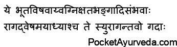 Bhanga (fracture of bone), and so on. Also, those caused by raga (desire, lust), dvesha (hatred), Bhaya (fear), etc. They are all known as Agantu illnesses that result from external triggers.