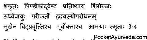 Urdhvavayu – an upward motion that originates from Vata, Parikarta – Itching sensation in Anal region Hridayasya Uparodhana – stiffness type feeling in the chest region. Mukhena Vit pravrutti – foul breath, feces vomiting.